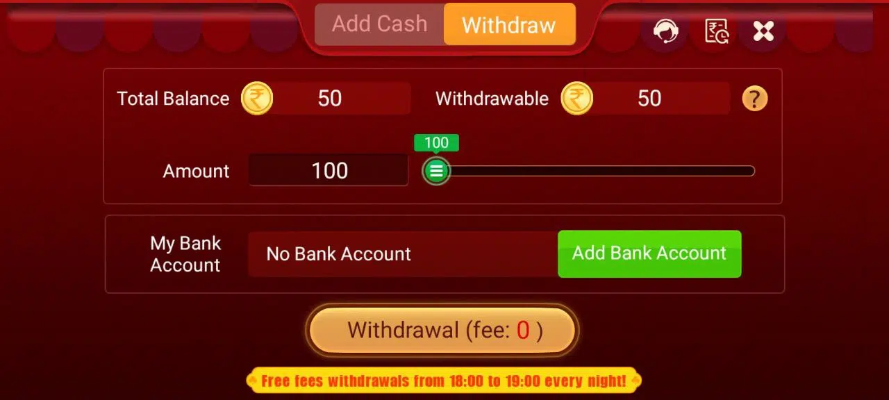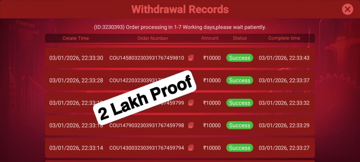 Minimum Withdrawal: ₹100 Maximum Withdrawal: ₹5000 Processing Time: Funds arrive within 1 hour Withdrawal Options: Supports multiple preset amounts (e.g., ₹100 / ₹300 / ₹500 / ₹1000 / ₹3000 / ₹5000 / ₹10000 / ₹20000) Real Cash Conversion: Bonus rewards can be converted into real withdrawable cash anytime