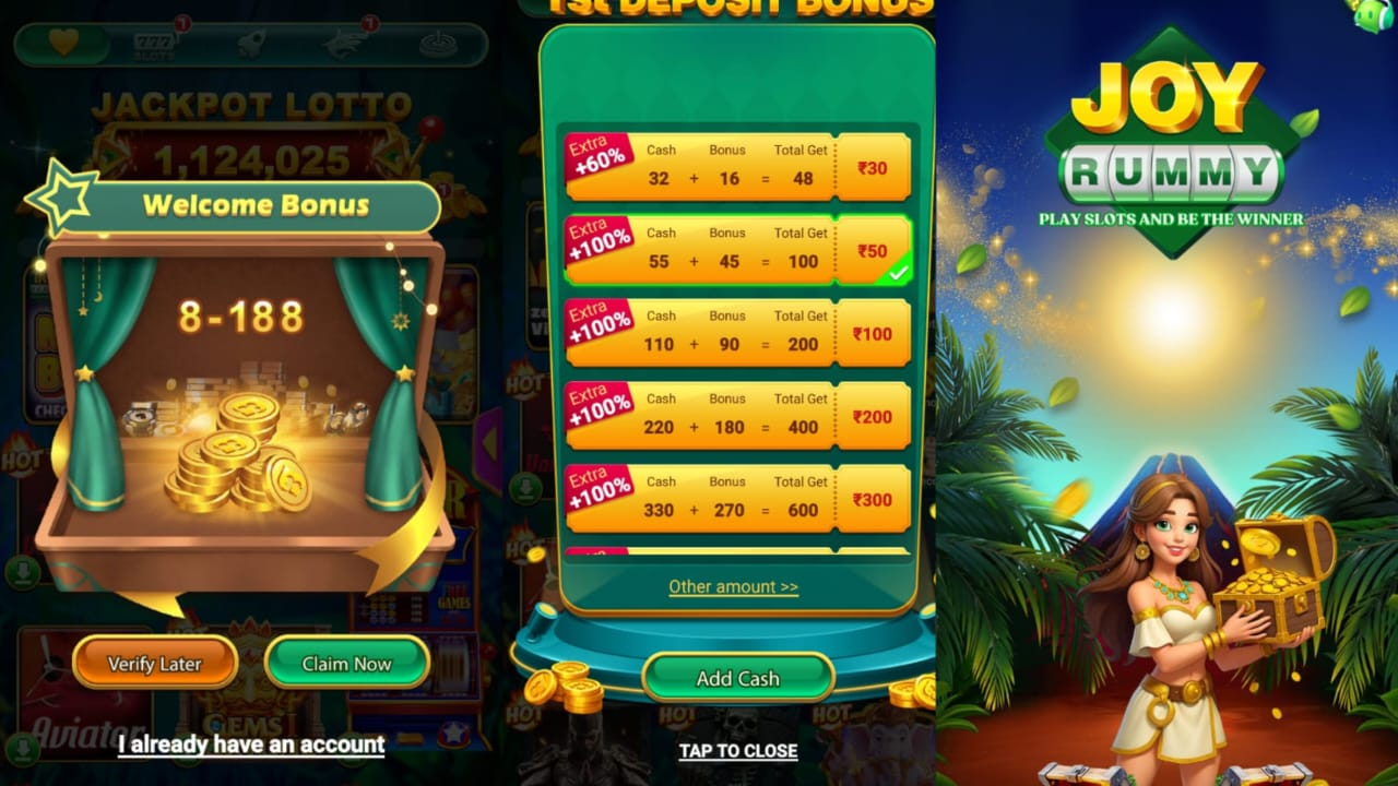 ap sab ko is Joy Rummy Vip Apk me account bahut asani se bna sakte hai aur dosto ap sab ko isme account bante samye 8 rupeya se lekar 188 rupeya tak bonus mil sakte hai ?