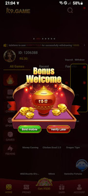 Friends, the name of this app is k9 game , if you create an account in this app, you will get a high bonus. How to download this app, if you follow what we are going to tell you, then you can download it very easily in your mobile. You can download this app in 2 ways, first of all, you will see a download bottom below this app, so you have to click on it, after that go to the home screen of the app, then you will click on another download option on the mobile,