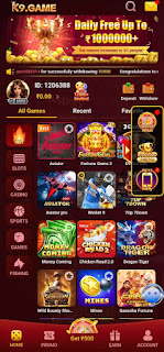 K9 Game Apk download Bonus 50, register daily and receive spin and win 500, play game deeply and win all prize money, minimum withdrawal ₹150 send to bank